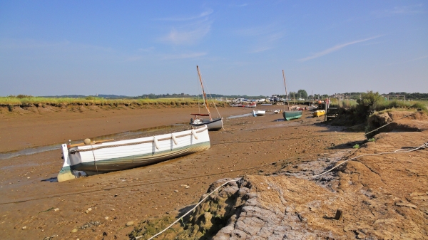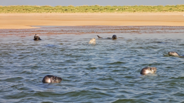 Blakeney, ca. 25 Meilen von Hunstanton entfernt, ist für seine riesigen Seehundbänke berühmt. Wir hatten eine Bootstour zum Blakeney Point gebucht und sollten uns zu einer bestimmten Zeit an einem Anleger einfinden. Der Ort, der uns angegeben wurde, lag irgendwo mitten auf dem Land und wir dachten schon, man hätte uns betrogen: ein kleines Rinnsal und ein altes Boot – keine Seehunde weit und breit.