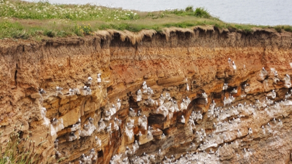 Robin Hood‘s Bay ist ein Fischerdorf südöstlich von Whitby, das auf Grund seines schönen Sandstrandes viele Besucher anzieht. Die Wanderung über den Coast Path führt vorbei an hohen Felswänden, in denen Hunderte von Vögeln nisten.